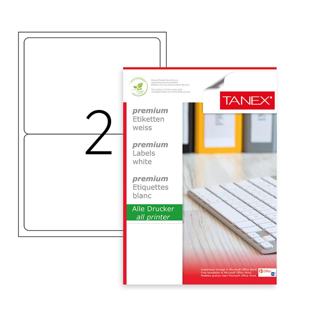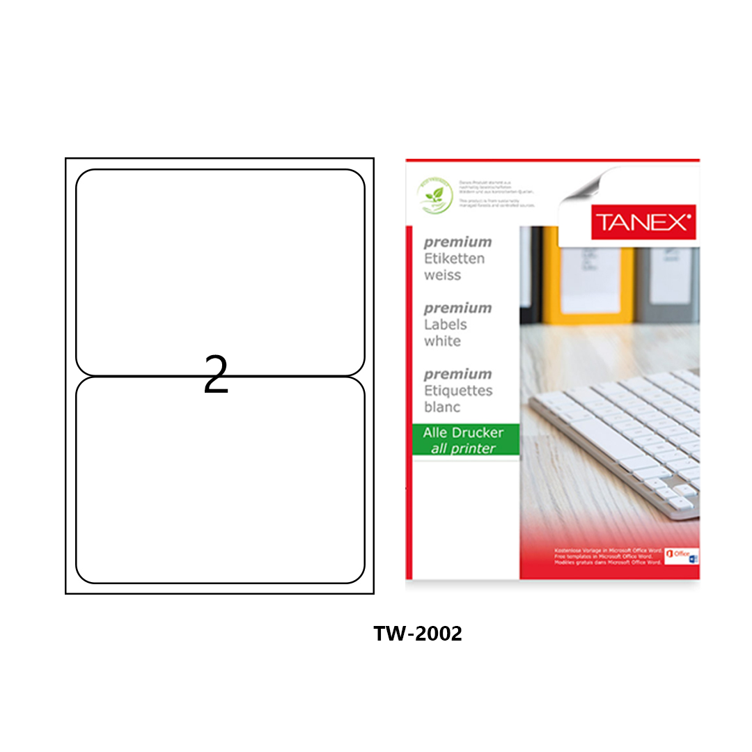 Tanex Labels White Bx=100Sht,199.6×143.5mm,2Lbl/Sh TW-2002