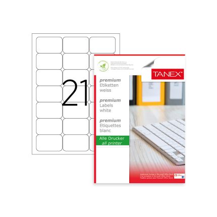 Tanex Labels White Bx=100Sht,63.5×38.1mm,21Lbl/Sht TW-2021